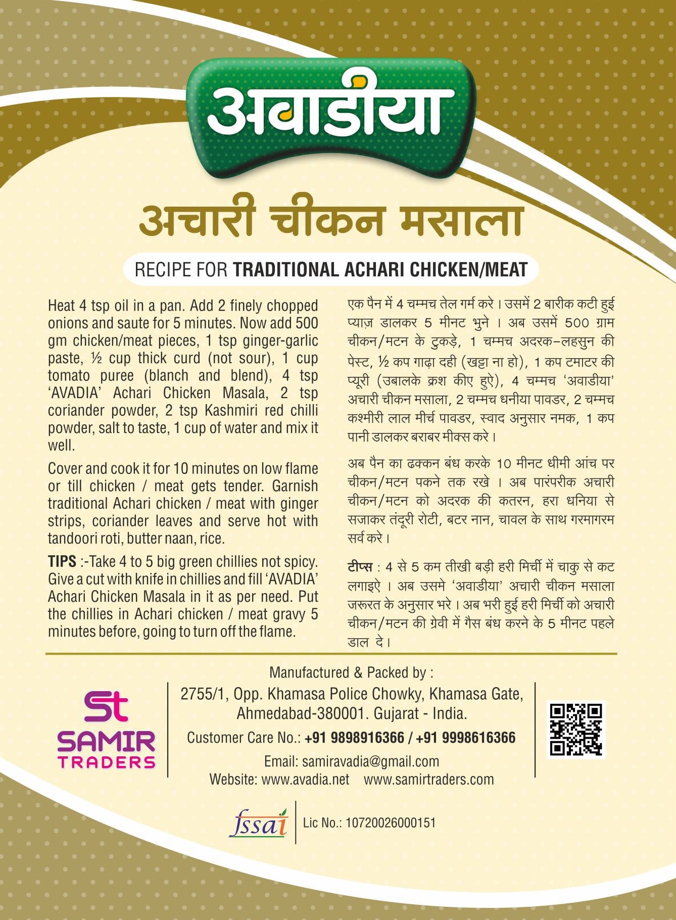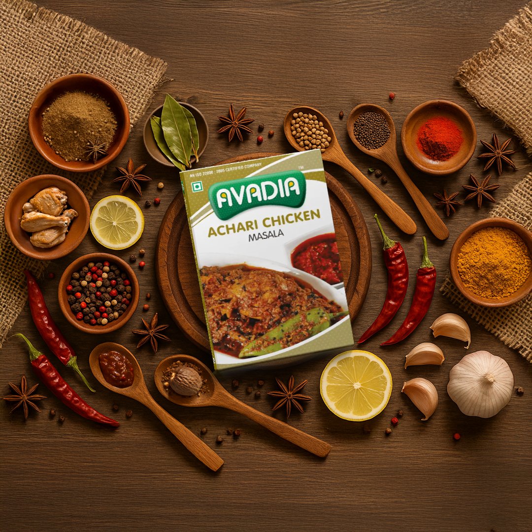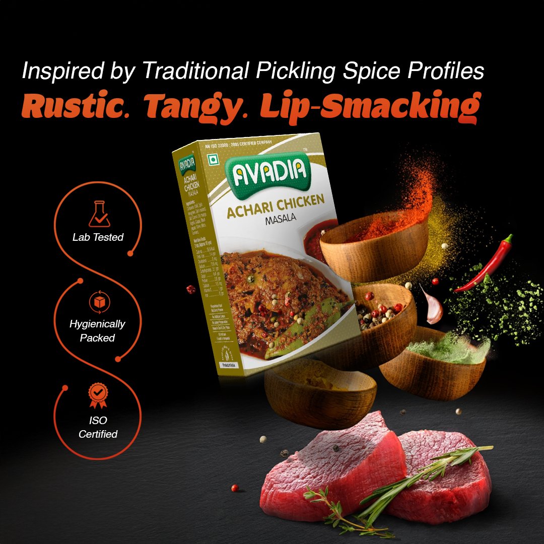 Avadia Achari Chicken Masala | Tangy Pickle-Style Chicken Blend | No Artificial Colors or Preservatives