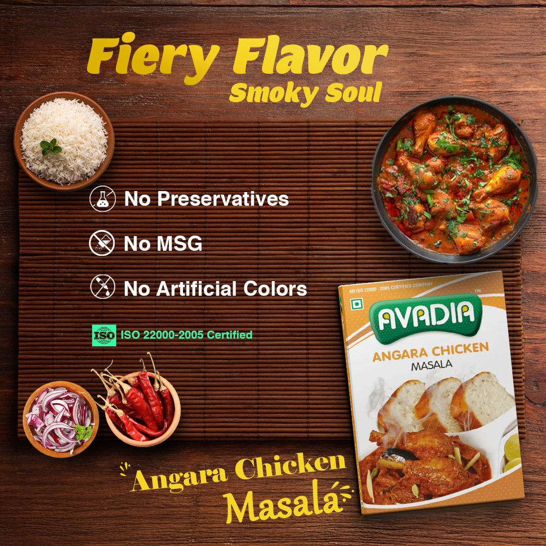 Avadia Angara Chicken Masala | Smoky Tandoori-Style Spice Blend | No Artificial Colors or Preservatives