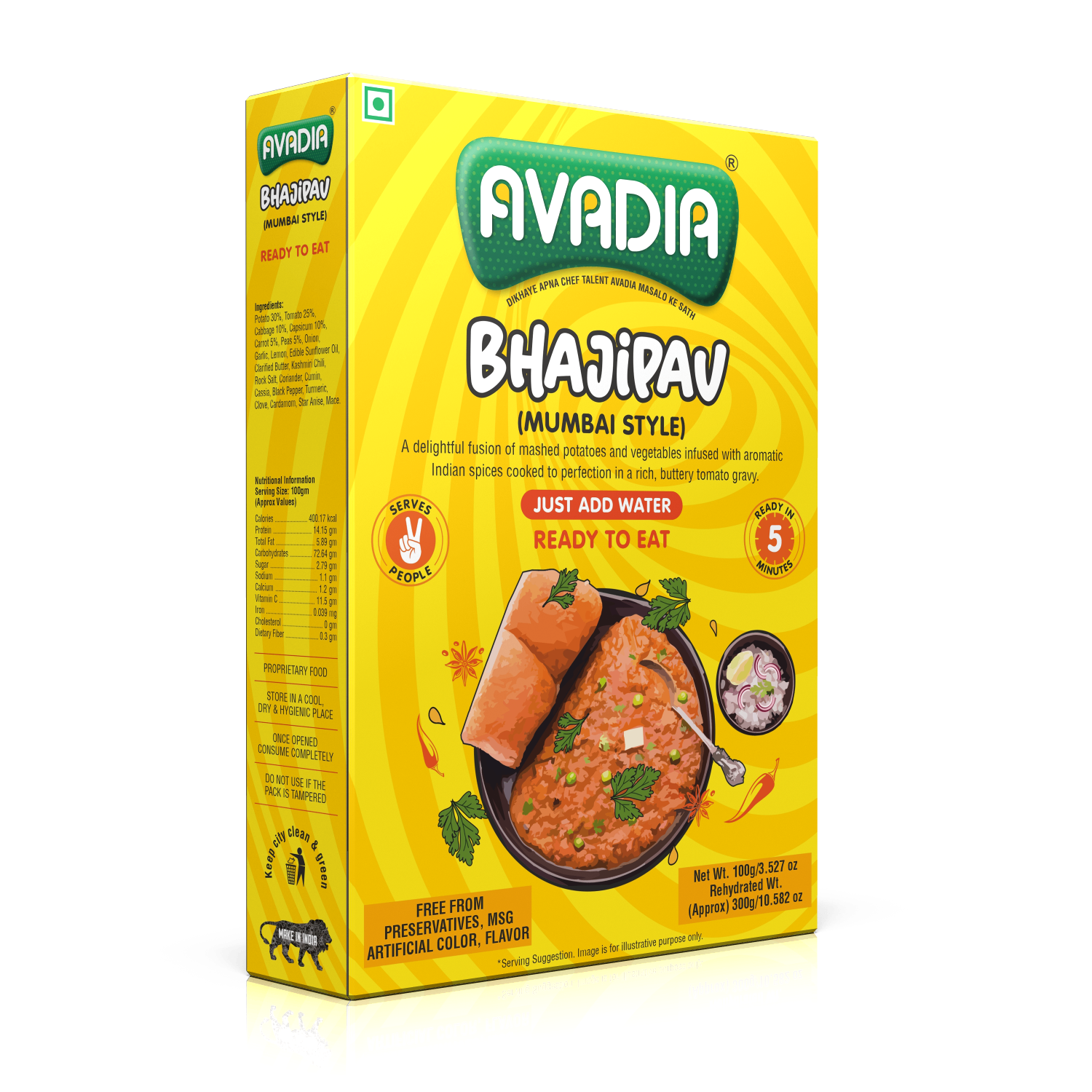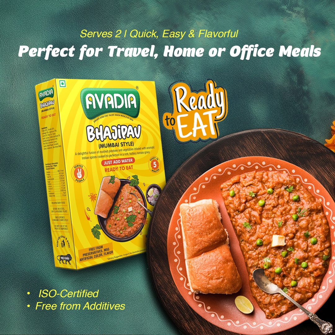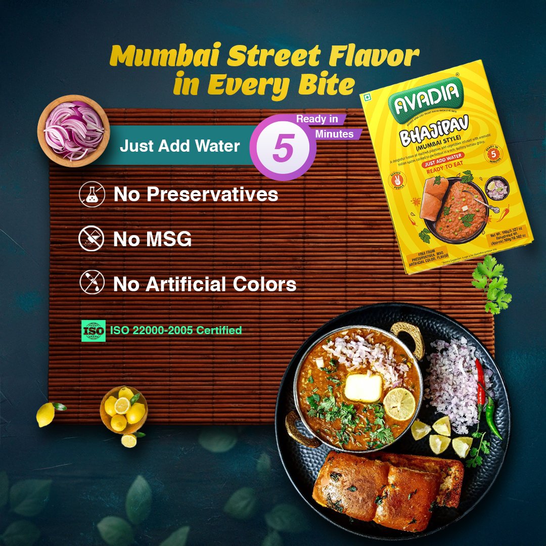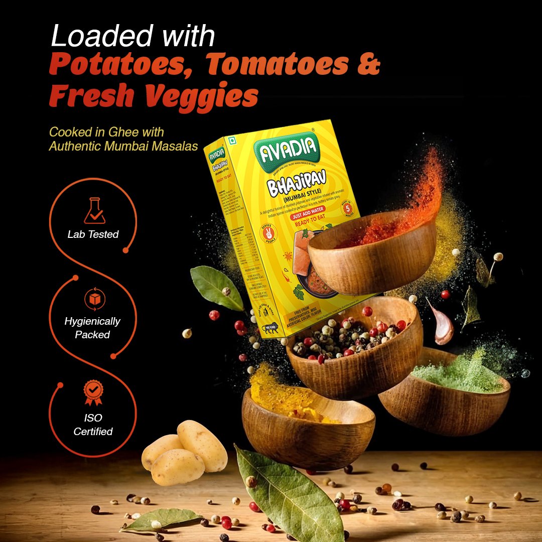 Avadia BhajiPav (Mumbai Style) Ready to Eat | Authentic Street-Style Pav Bhaji Mix | No Preservatives or Artificial Colors | Serves 2 | Just Add Water