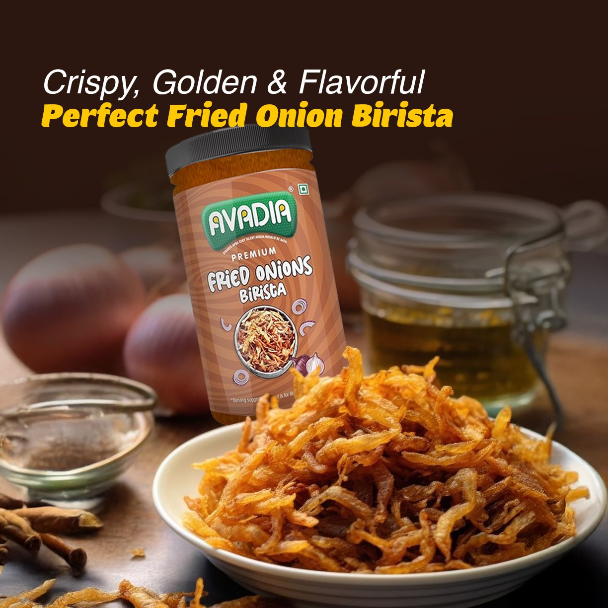 Avadia Fried Onion Birista | Crispy Fried Onions | 100g | No Preservatives