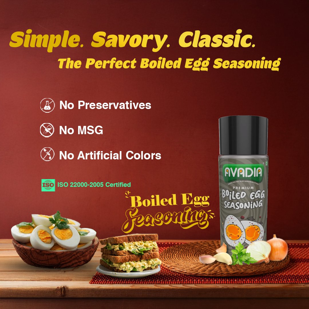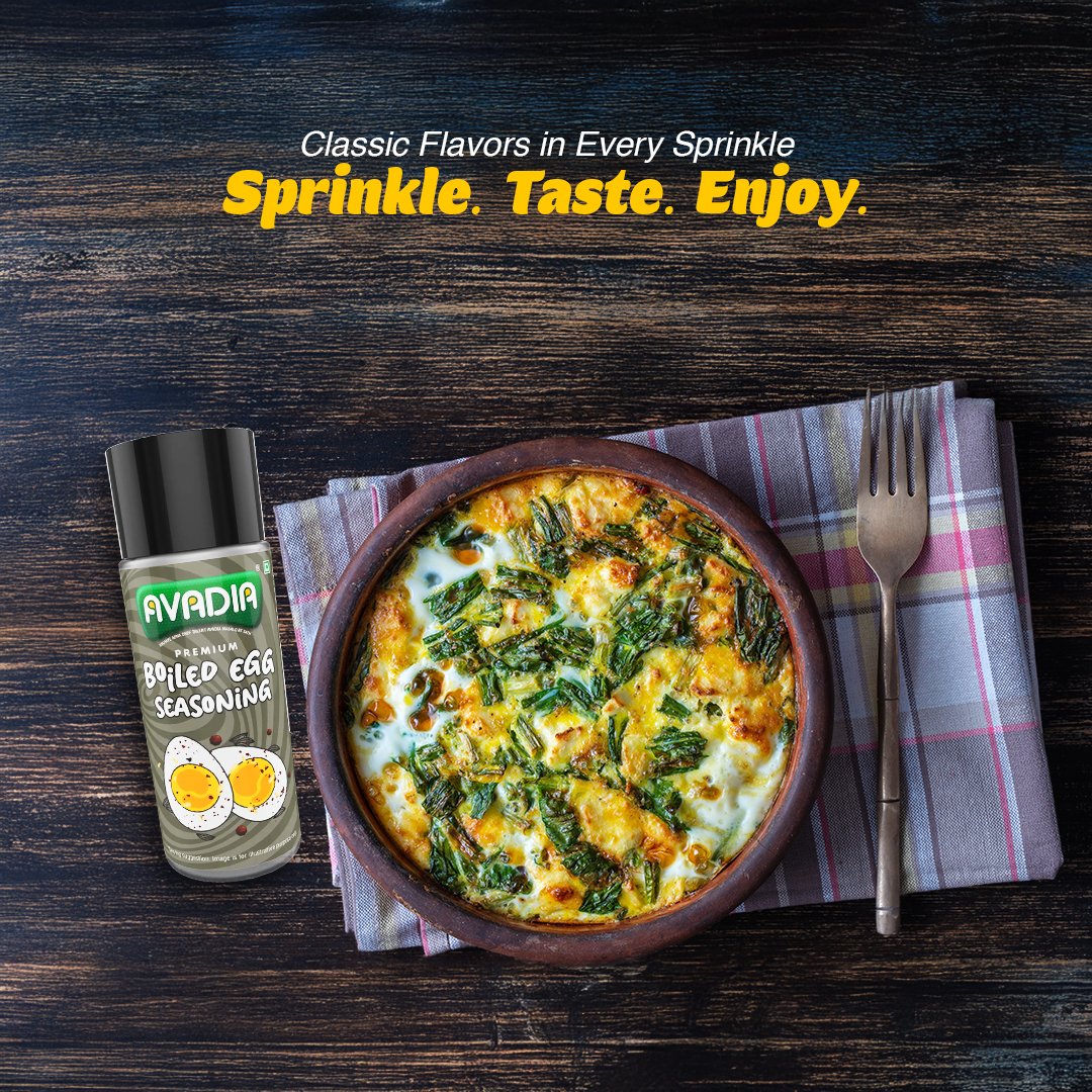 Avadia Boiled Egg Seasoning is a classic blend of aromatic cumin, black pepper, black salt, and iodized salt. This simple yet flavorful seasoning elevates boiled eggs and snacks with authentic taste. Free from preservatives and artificial colors, it offers a pure and natural way to enhance everyday meals.