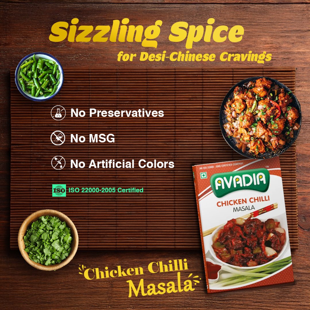 Avadia Chicken Chilli Masala | Indo-Chinese Style Blend for Gravy & Dry Dishes | No Artificial Colors or Preservatives