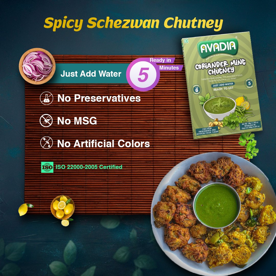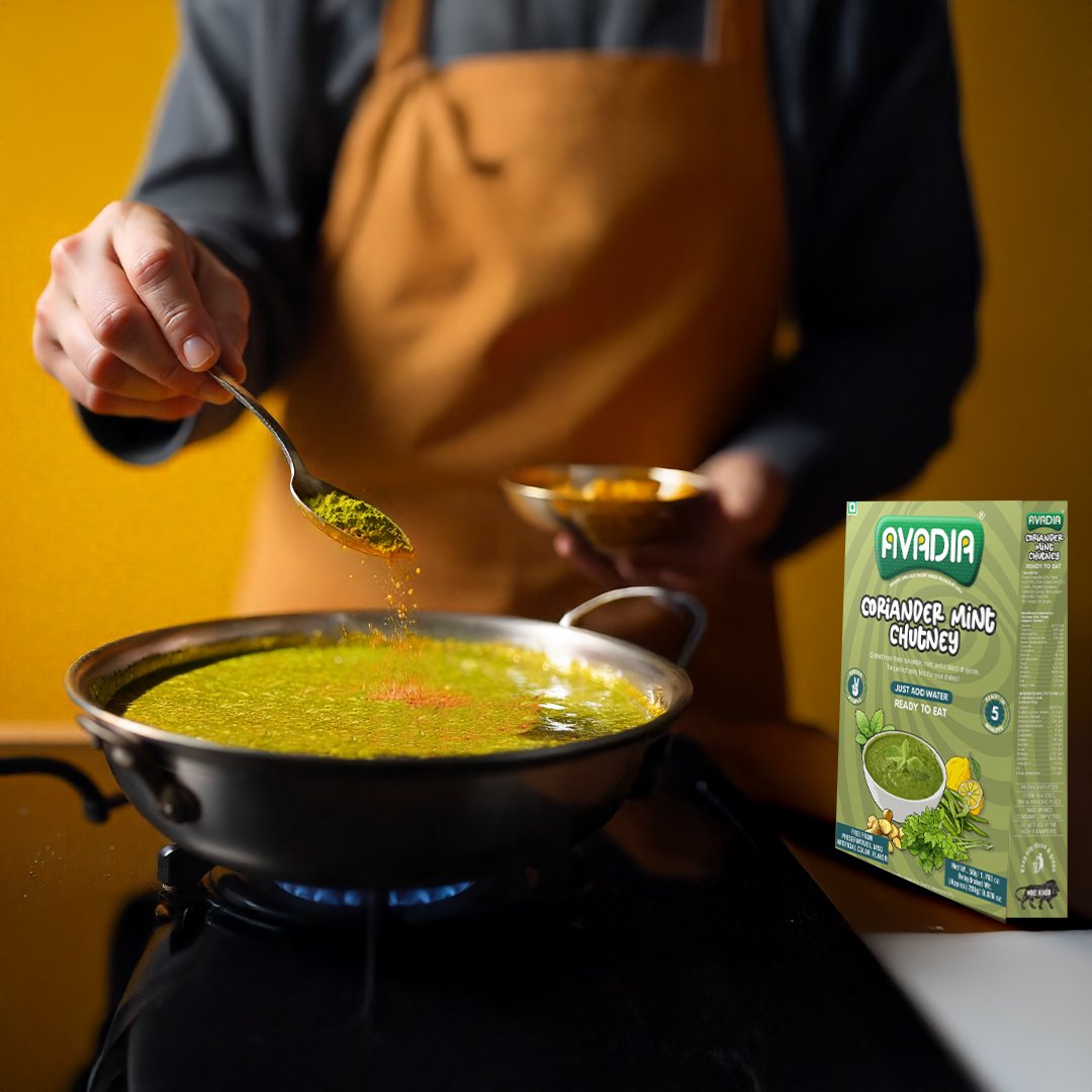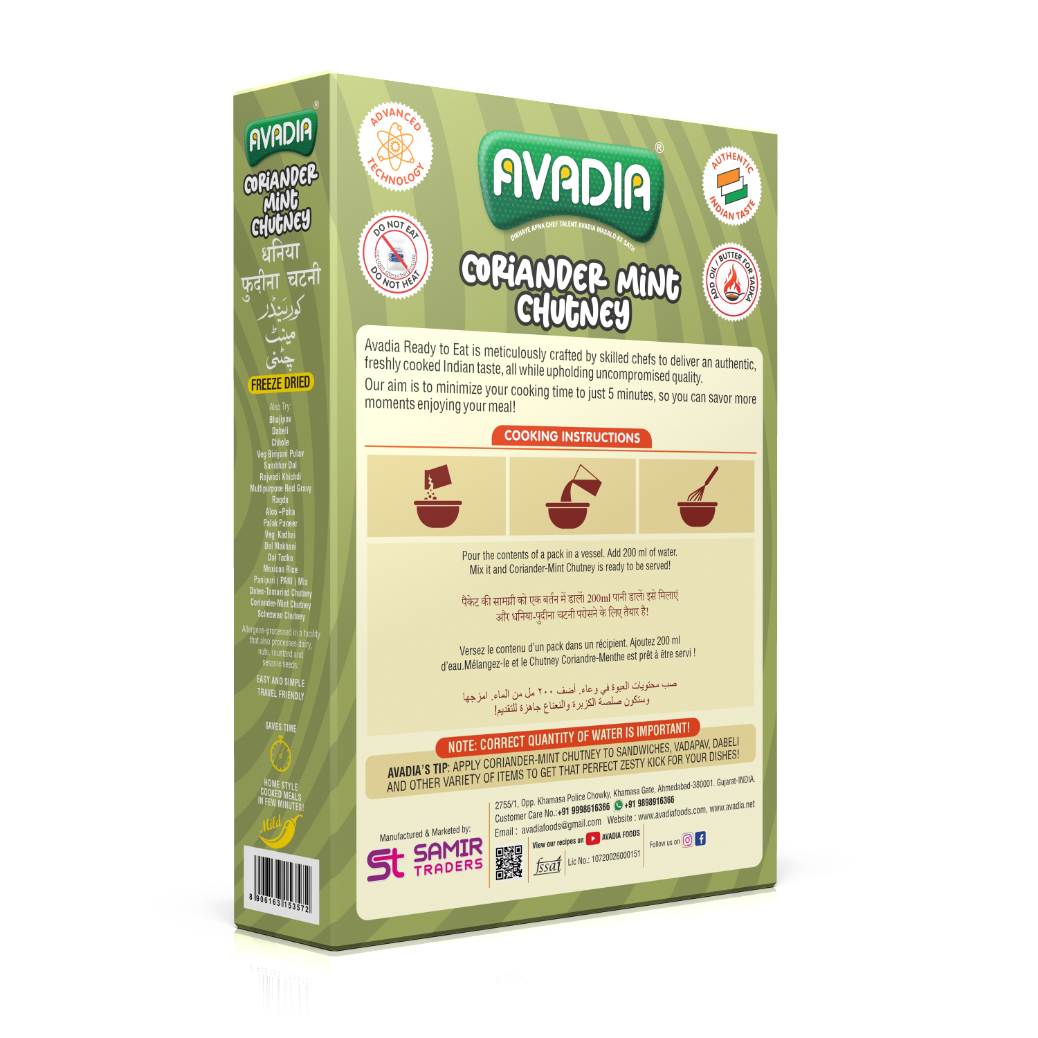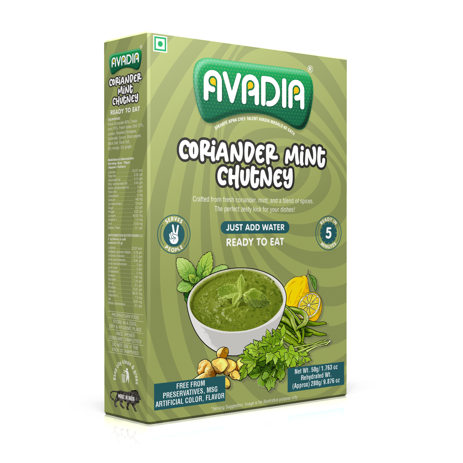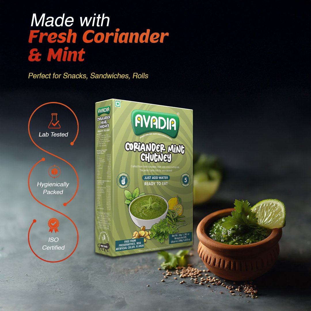Avadia Coriander Mint Chutney Ready to Eat | Just Add Water | Instant Green Chutney with Mint & Lemon | No Preservatives | Serves 2 | Travel-Friendly