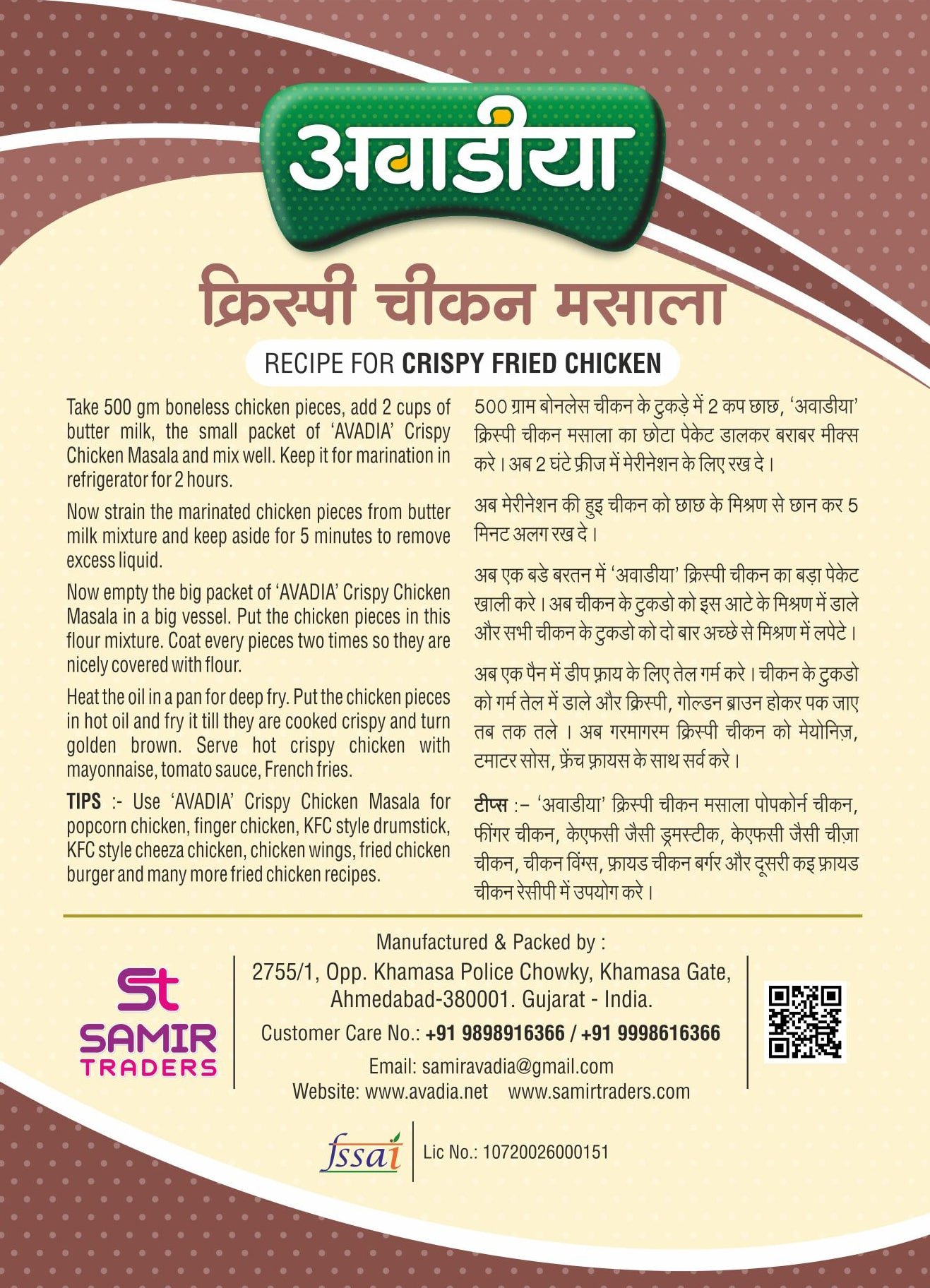 Avadia Crispy Chicken Masala | Flavorful Coating Mix for Fried & Crunchy Chicken | No Artificial Colors or Preservatives
