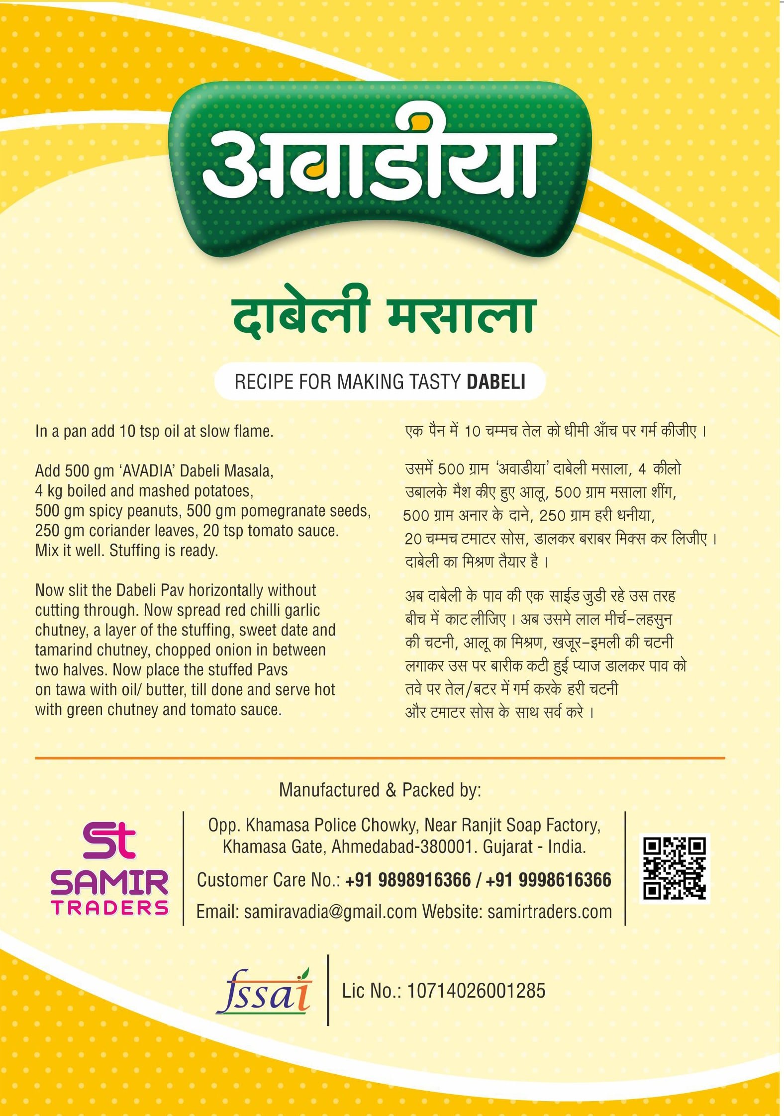 Proudly crafted in an ISO 22000:2005 certified facility, Avadia Dabeli Masala contains no artificial colors, no added preservatives, and retains the true essence of natural spices. Just mix, toast, and serve – street-style Dabeli is now a home delight.