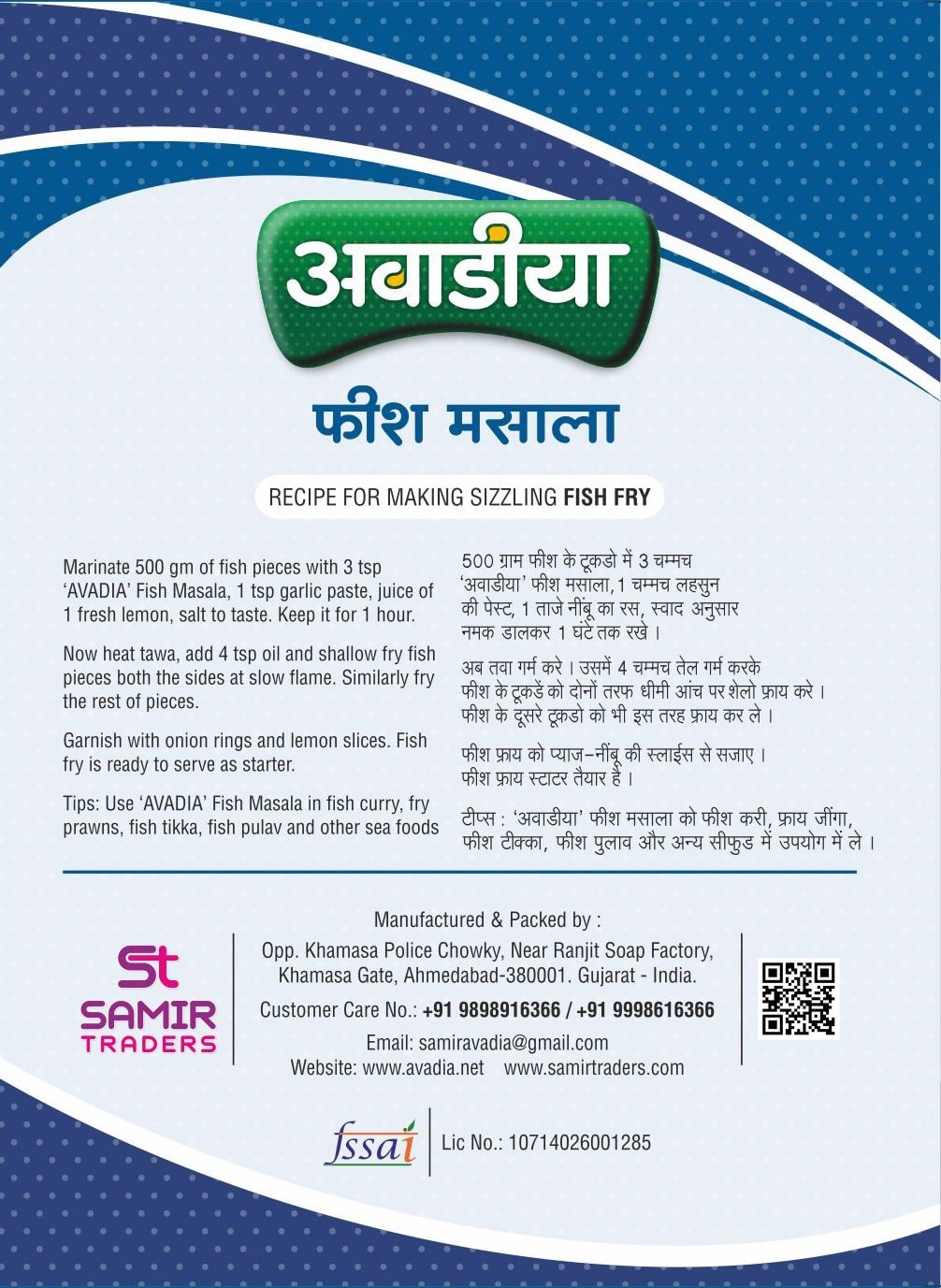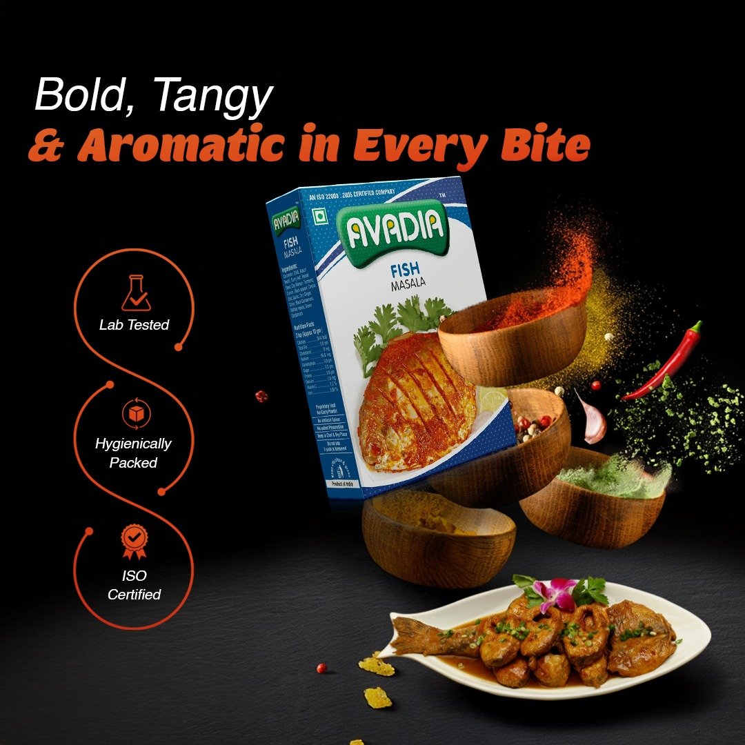 Avadia Fish Masala | Aromatic Spice Blend for Fry, Curry & Grill | No Artificial Colors or Preservatives