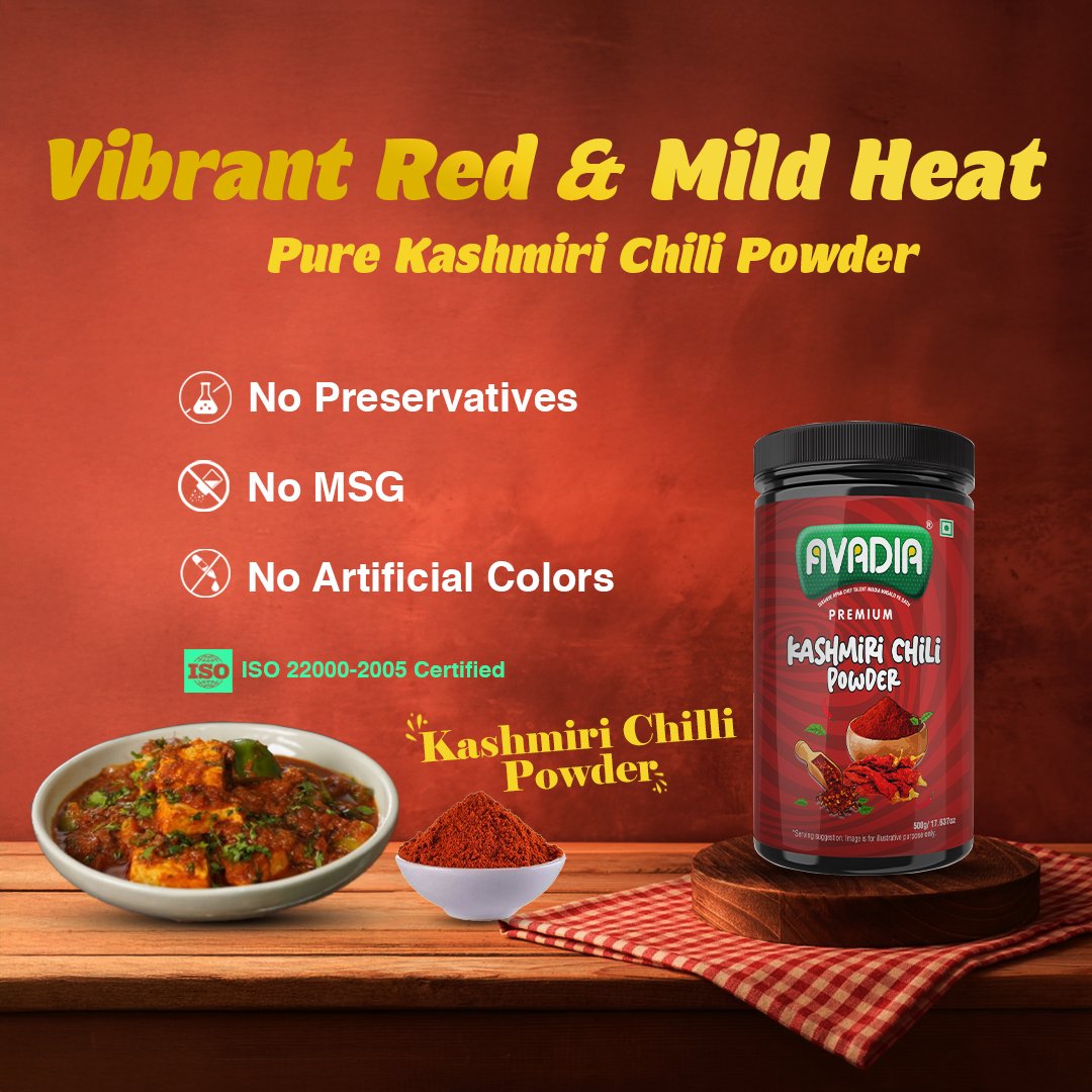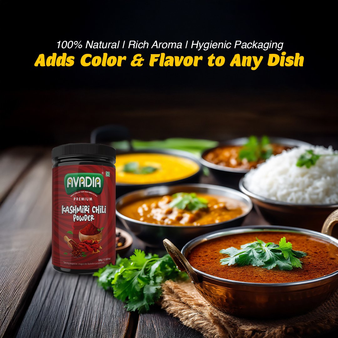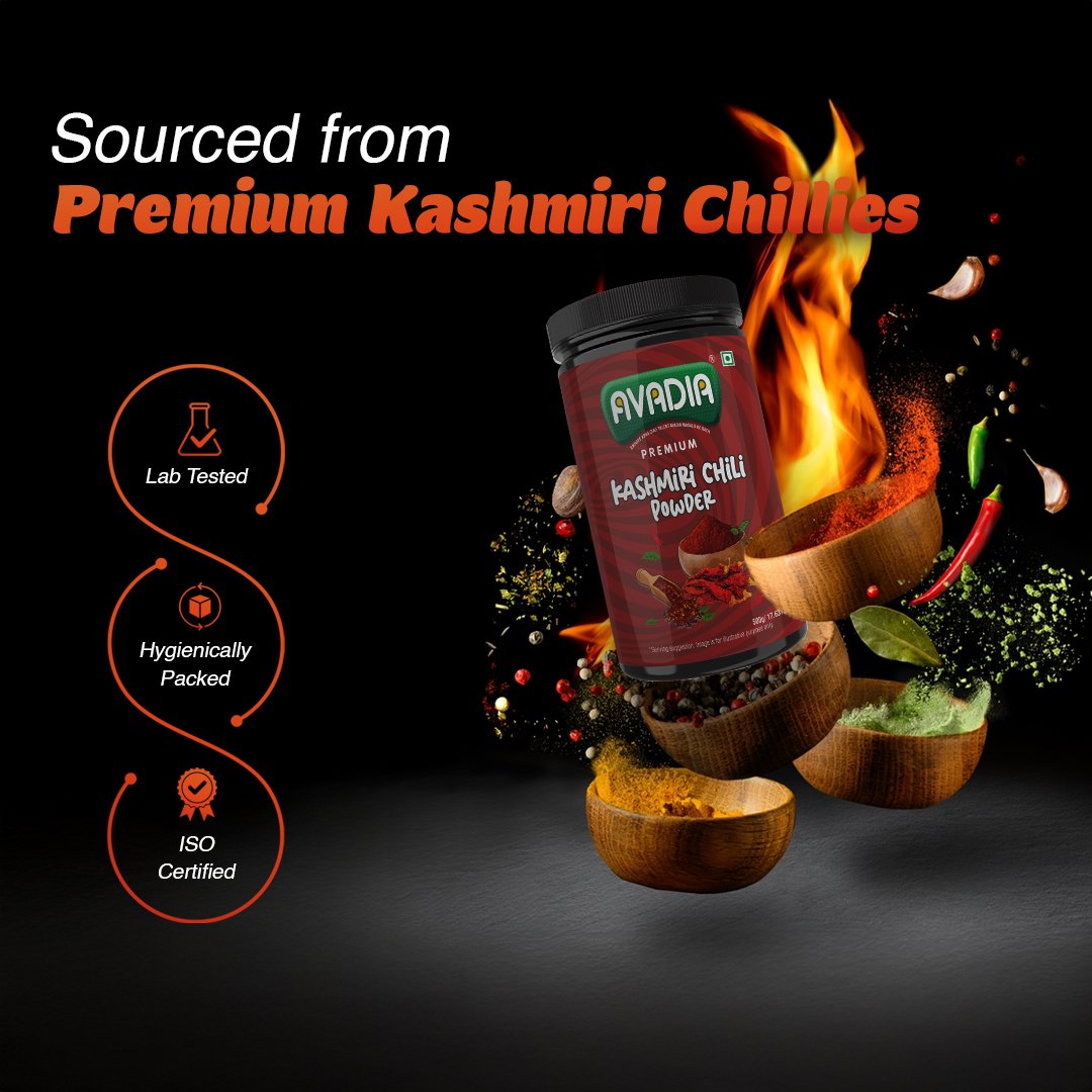Avadia Kashmiri Chili Powder | Mild & Vibrant Red Chili Powder | 100g | No Preservatives