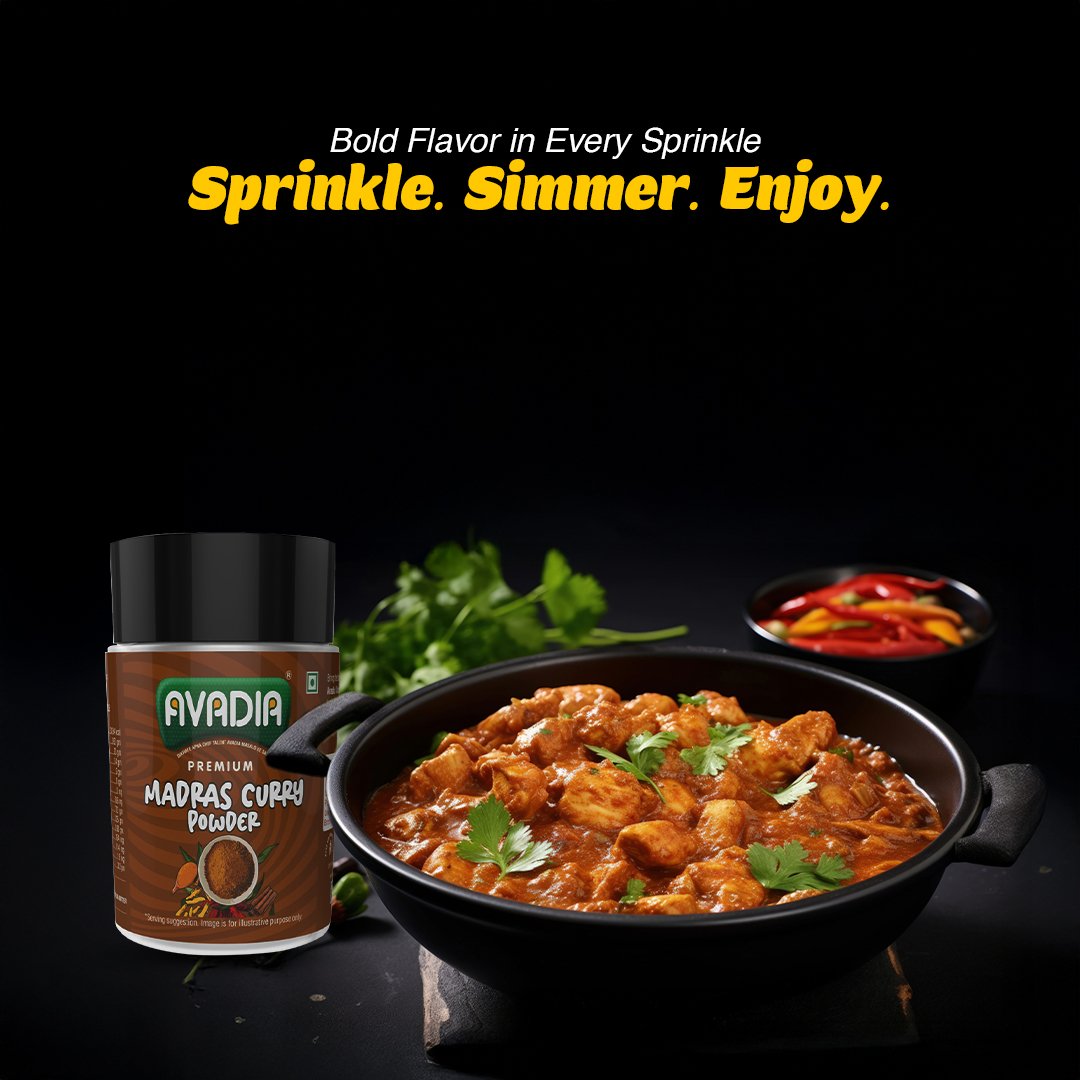 Avadia Madras Curry Powder is a carefully blended mix of bold spices designed to deliver the authentic heat and flavor of Madras cuisine. Perfect for enriching curries, gravies, and stir-fries, this powder contains no preservatives or artificial colors, ensuring a natural and flavorful cooking experience every time.