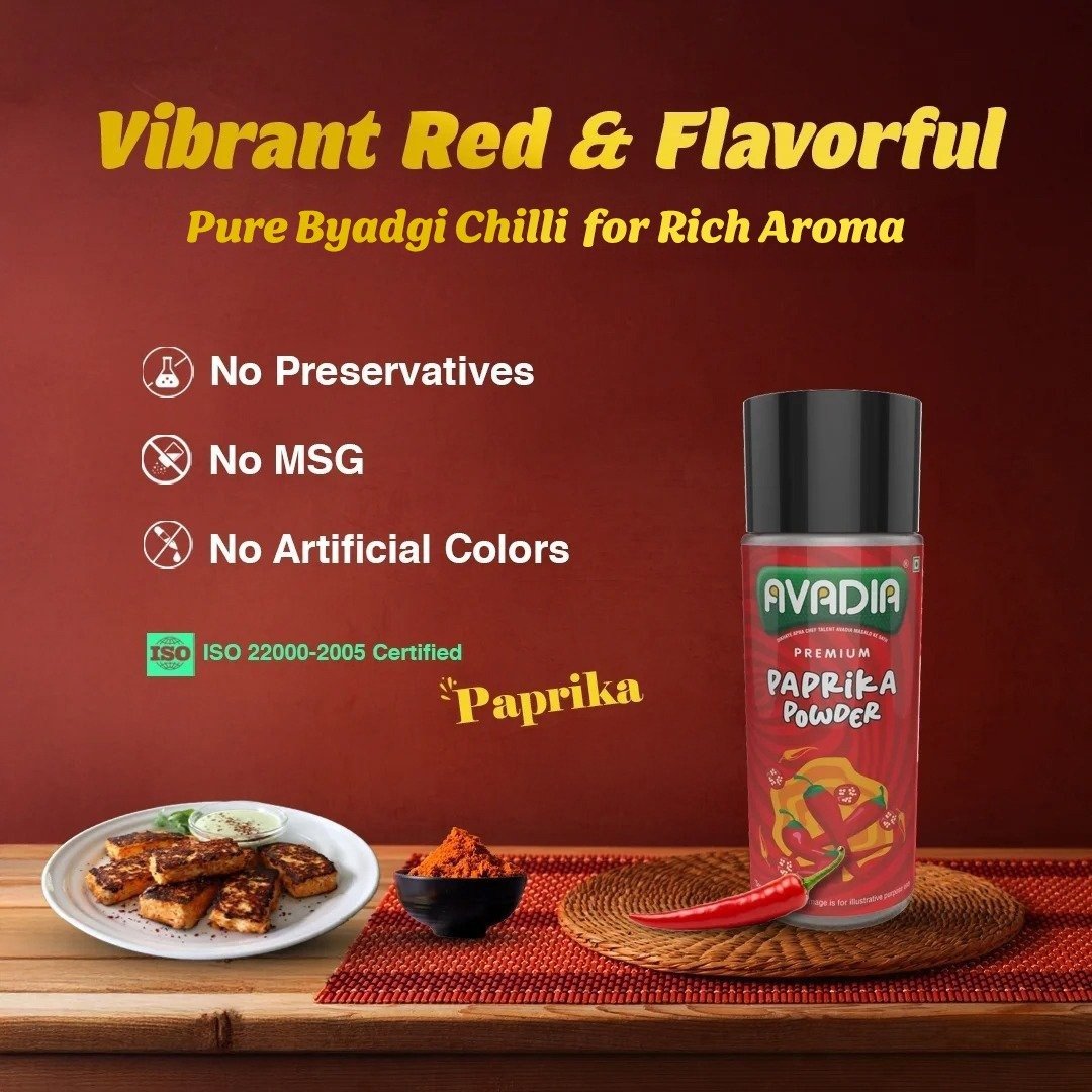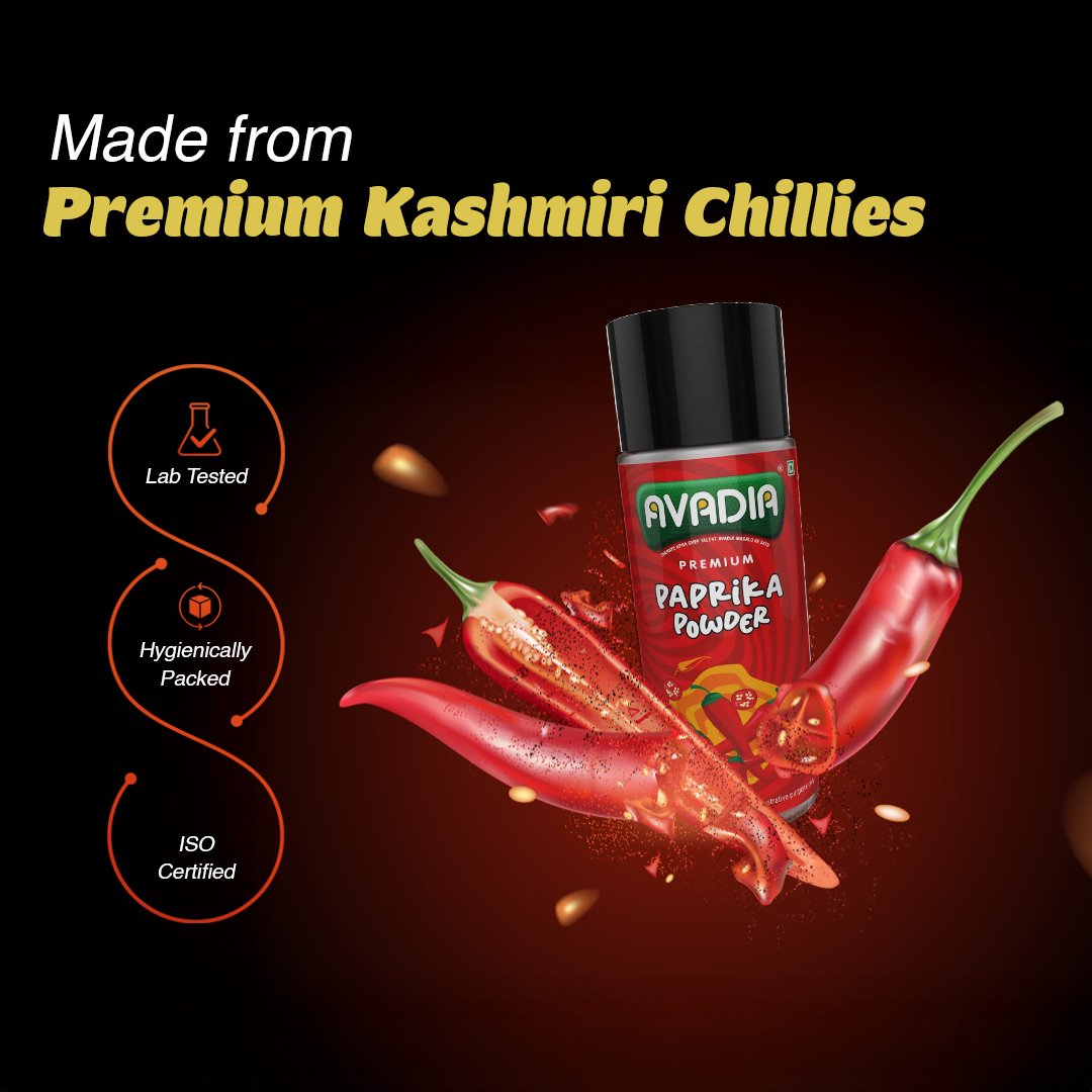 Avadia Kashmiri Chilli Powder is rich and aromatic, crafted from premium Kashmiri chillies. Its vibrant red color and smooth, mildly spicy flavor add natural color and depth to any dish. Free from preservatives and artificial colors, it offers a pure and authentic seasoning experience. Hygienically packaged to maintain freshness, it’s perfect for enhancing everyday cooking.