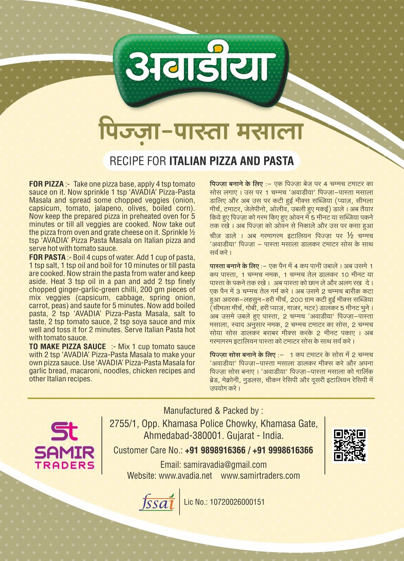 Avadia Pizza-Pasta Masala | Indo-Italian Fusion Blend | No Artificial Colors or Preservatives