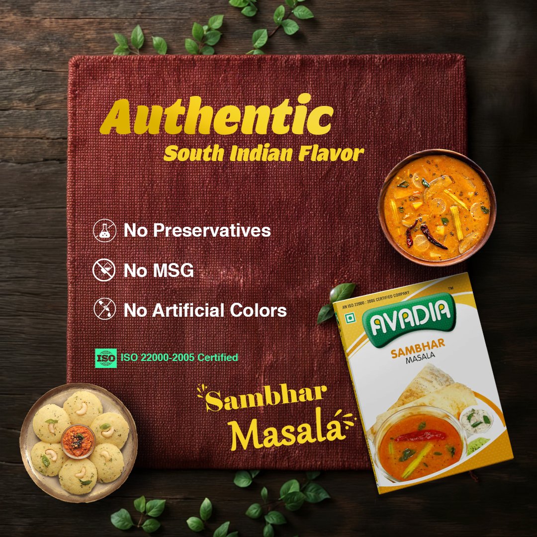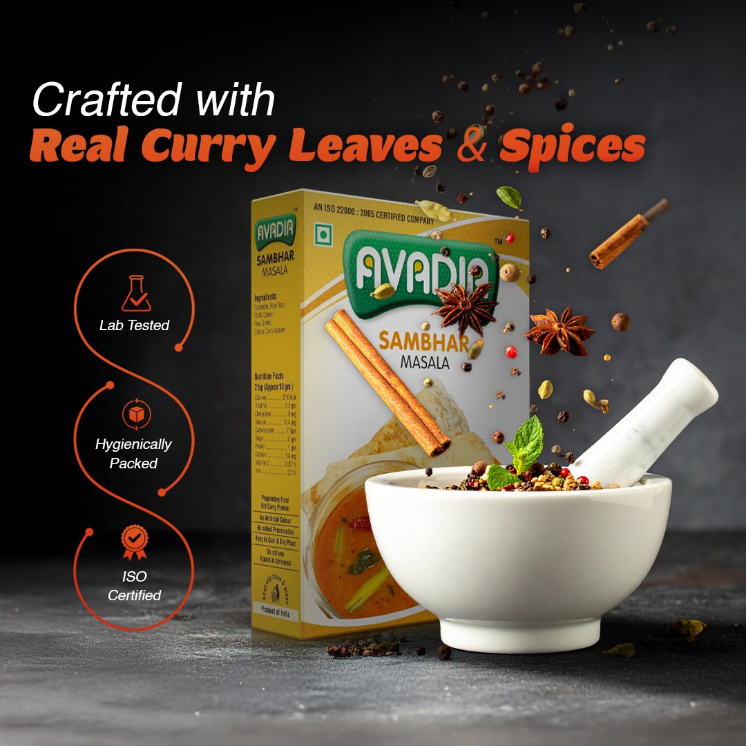 Avadia Sambhar Masala | Authentic South Indian Spice Blend | No Artificial Colors or Preservatives