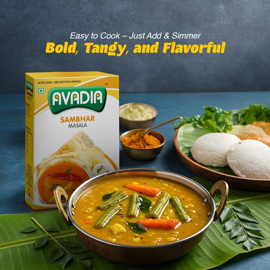 Whether you’re serving up dosa sambhar or a wholesome South Indian thali, Avadia Sambhar Masala is your key to deliciously authentic meals.